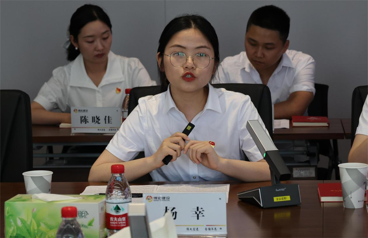 陳露對黨員彭迎的先模故事進行了分享。工作認真,腳踏實地;勤懇務實,關心同事;工作認真負責,將個人成長融入公司發展是彭迎的標簽。工作中,她能夠站在公司的角度,為部門管理出謀策劃;能夠很快適應新的崗位,在新的業務區域快速開展工作;能夠在業余時間精專業務知識,提高工作能力。彭迎積極進取、熱情奉獻的事跡打動著現場的每一位黨員。